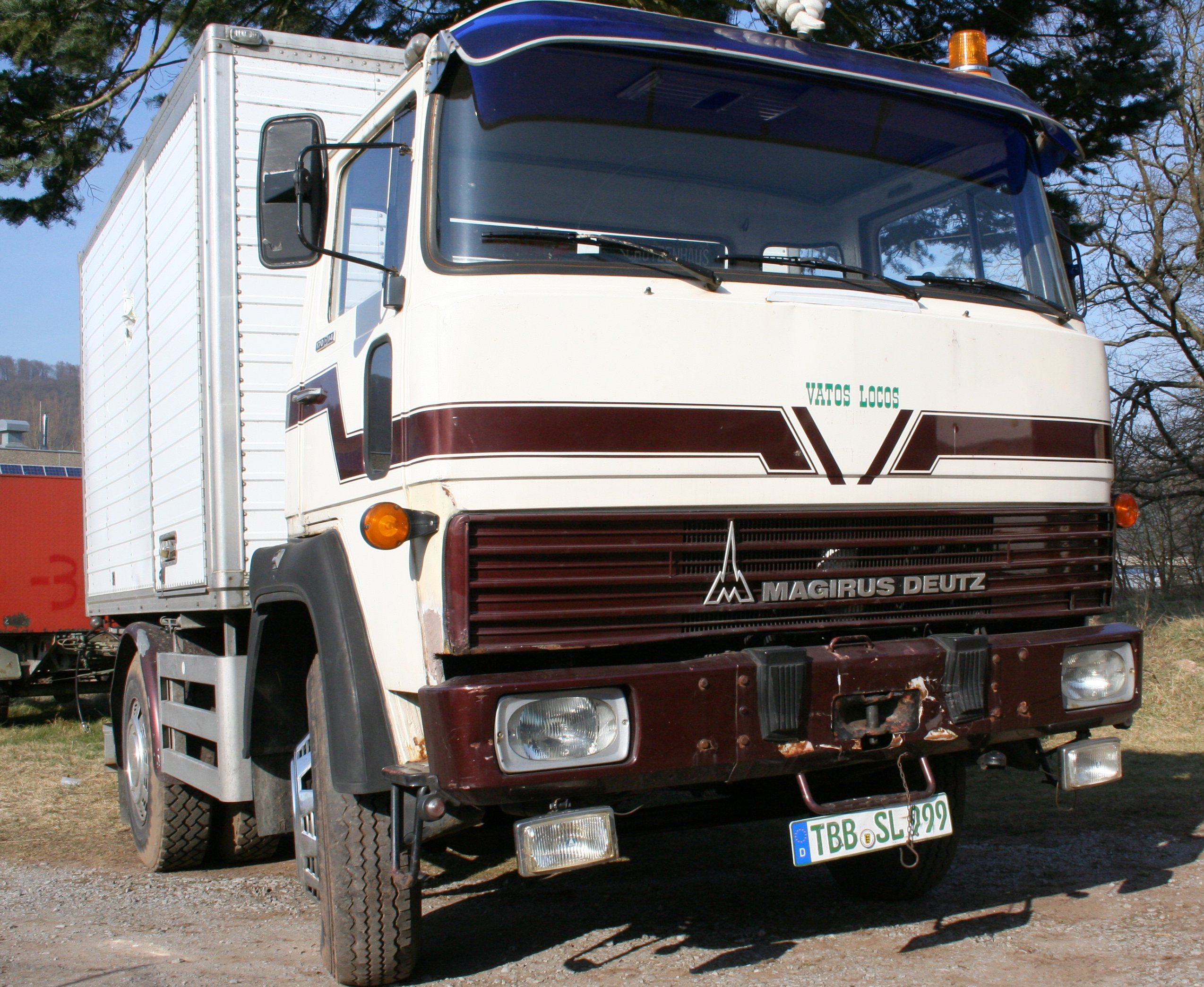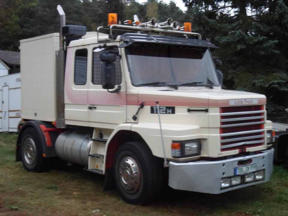 Ebenfalls ist unser "Bulle", eine Scania 110 H mit 310 PS, für den Transport unsererGeschäfte zuständig.